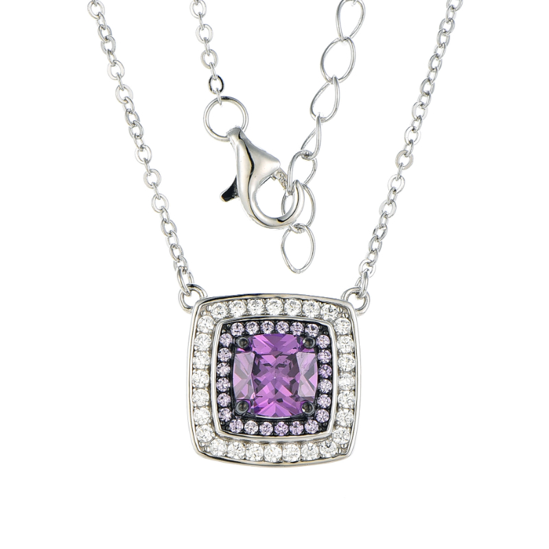 Silver Cubic Created Amethyst Pendant And Chain S800