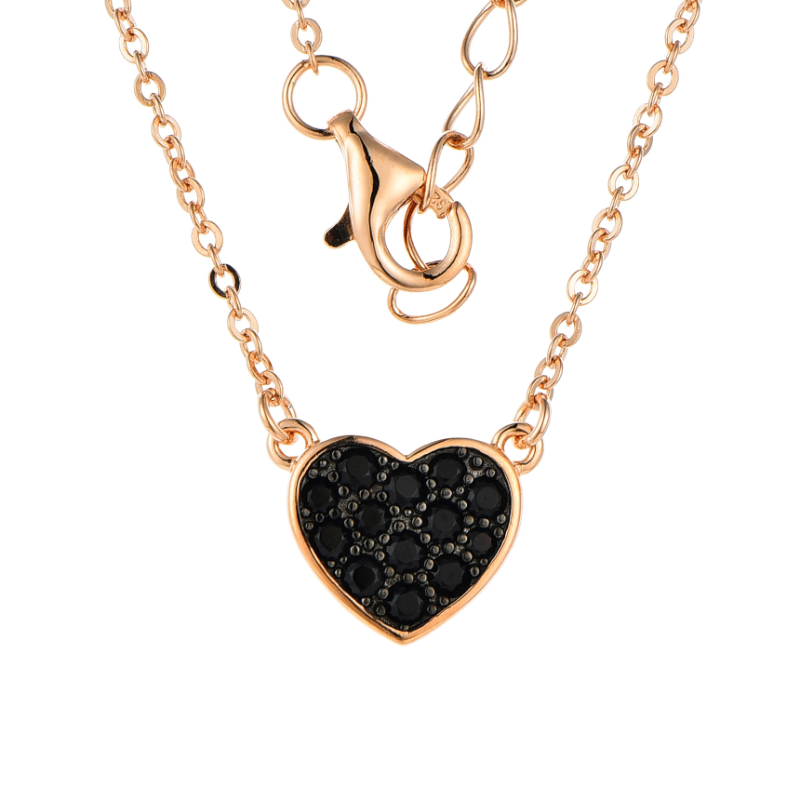 Silver Rose Cubic Zirconia Heart Pendant With Chain