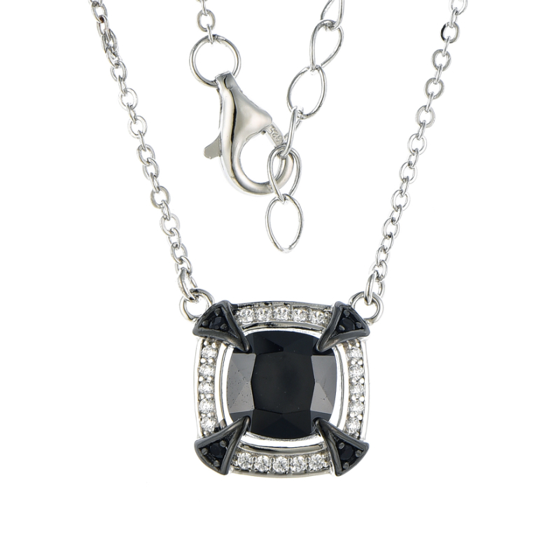 Silver Cushion Cubic Created Colour Necklace