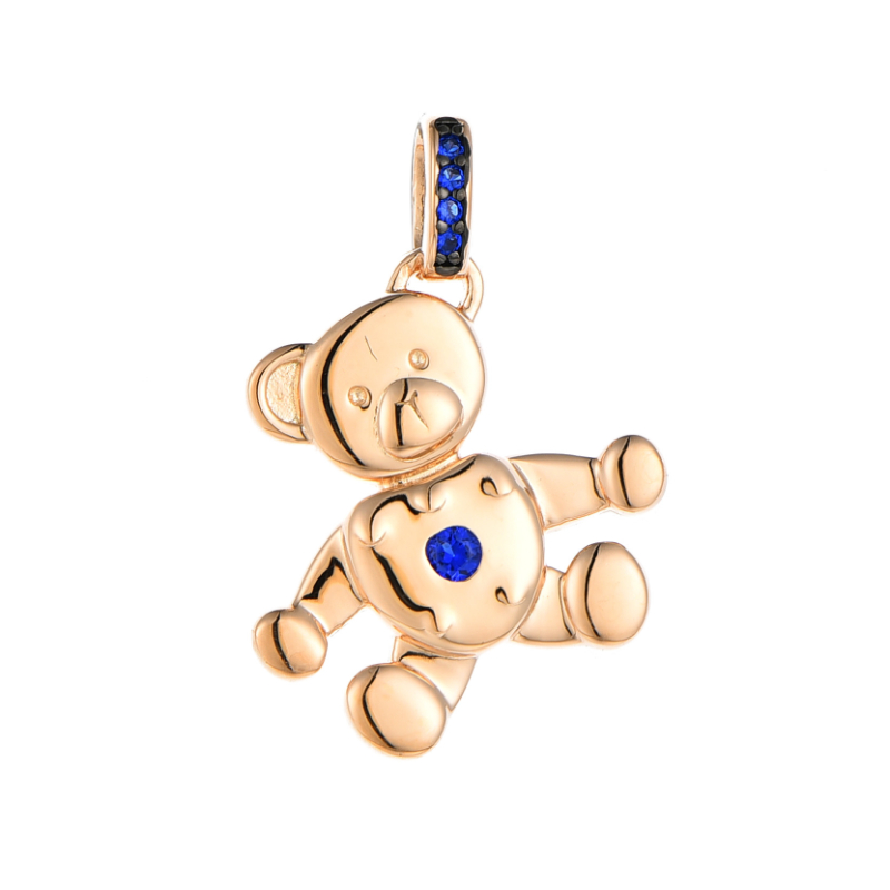 Silver Rose Gold Plated Cubic Teddy Bear Necklace
