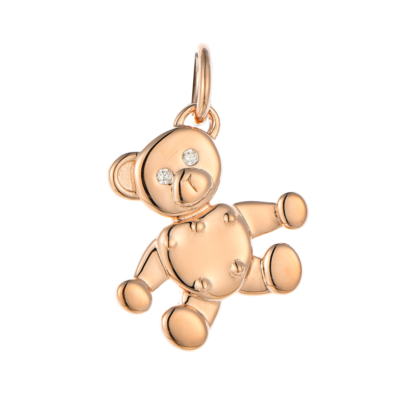 Silver Rose Gold Plated Cubic Teddy Bear Necklace