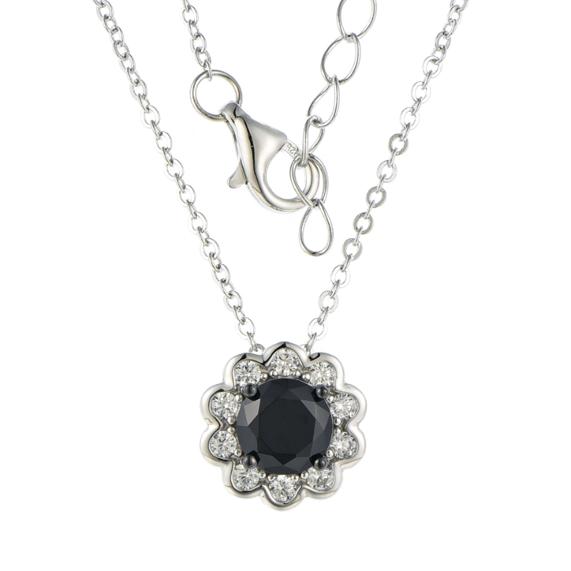 Silver Created Colour 3 Oval Stone Flower Pendant